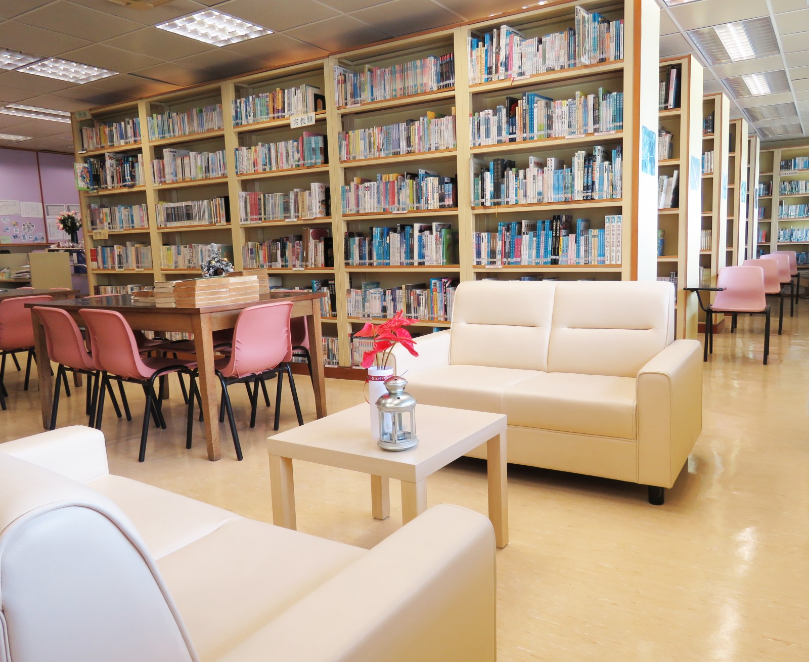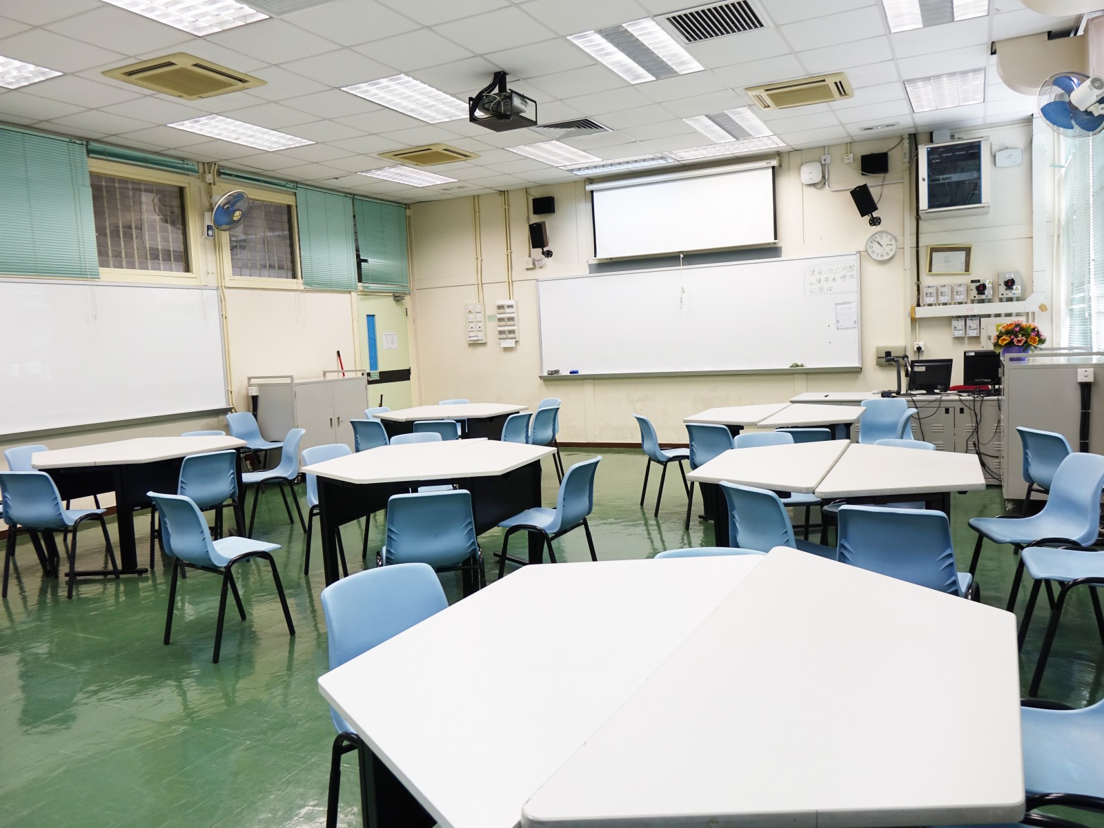 There are 28 air-conditioned classrooms and 20 special rooms including 4 Laboratories, 2 Computer/Computer Assisted Learning Rooms, English Language Room, English and Chinese Reading Rooms, Geography Room, Design & Technology Room, Home Economics Room, Music Room, 2 Art Rooms, Lecture Room, Function Room and Multi-purpose Room. The sports facilities comprise Table-tennis Training Room, Basketball Court, Volleyball Court as well as Slip-proof Playground. Other facilities include the Lut Sau Hall, School Library, Student Activity Centre, Instrumental Practice Room, Band Room, Rehearsal Room, Tuck Shop, Medical Room, Campus Broadcasting Room, Liberal Studies Resource Centre, English Resource Centre, School Social Worker's Office, Student Union Office, Alumni Association Office, PTA Office, Conference Room, Interview Room and Meeting Room.